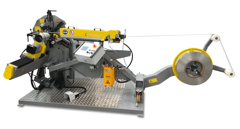 Voll automatische und synchronisierte Stauchanlage für Lüftungsrohre aus Aluminium.